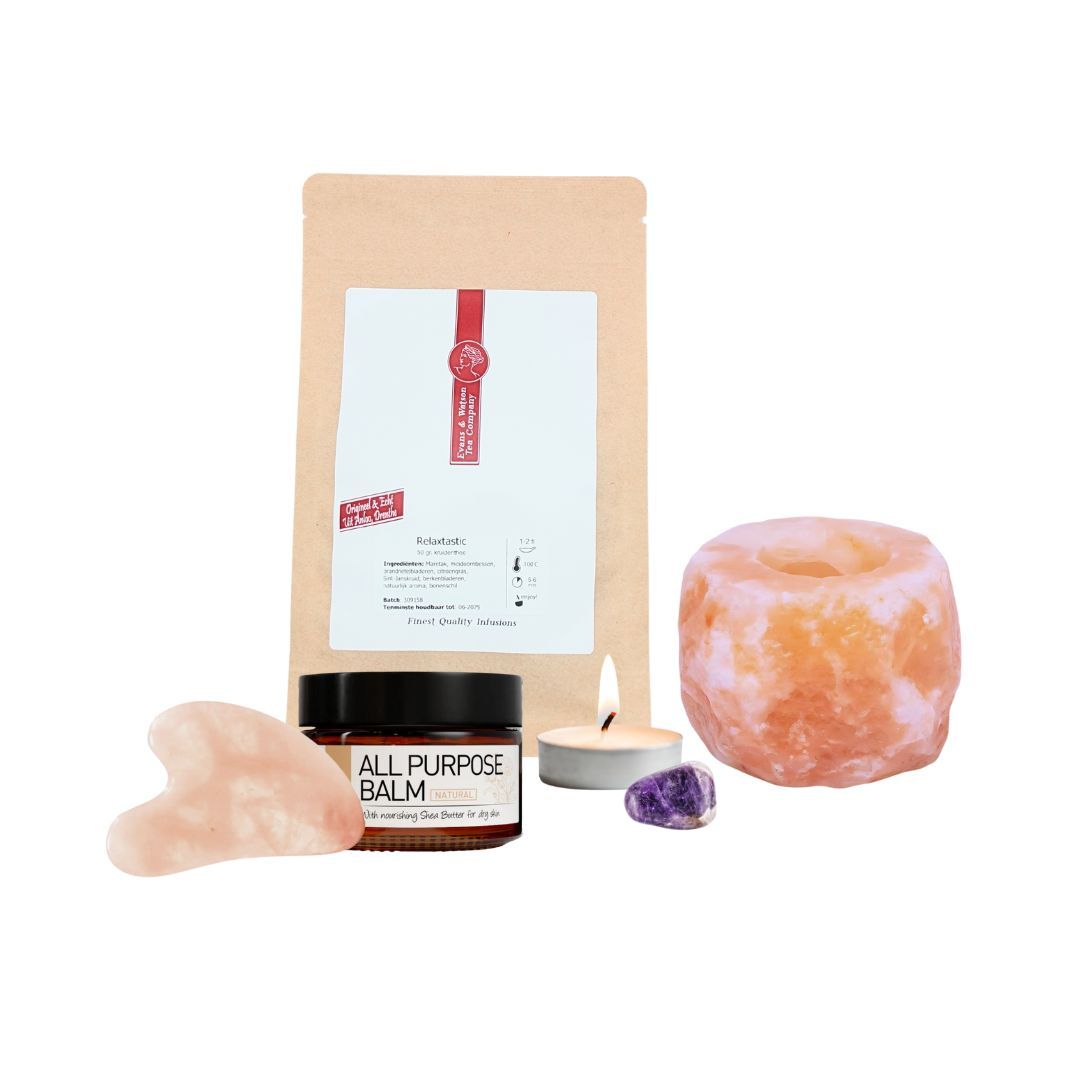 Verwen de aanstaande of kersverse moeder met deze luxe cadeauset, speciaal samengesteld voor pure ontspanning. Laat haar huid stralen met de Gua Sha Rozenkwarts, ideaal te gebruiken in combinatie met de voedende All Purpose Balm. Terwijl ze ontspant met een heerlijke kop thee, zorgt het zachte licht van een zoutkristal waxinelichtje voor een serene sfeer. De Amethist in deze set brengt rust en bescherming, en biedt zowel moeder als baby harmonie tijdens deze bijzondere tijd.