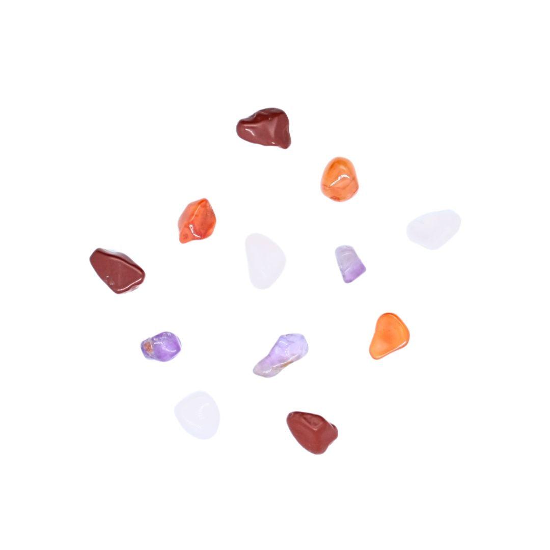 Deze prachtige set mini edelstenen bevat rozenkwarts, rode jaspis en amethist – een krachtige combinatie van liefde, energie, en rust. Samen ondersteunen ze een evenwichtige en positieve sfeer.
