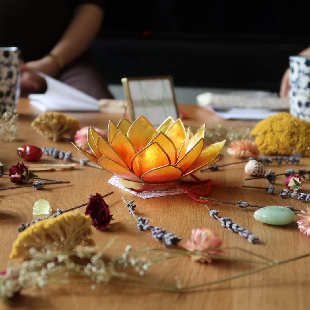 Tip! Voeg dit lotus waxinelichtje toe aan je altaar, samen met droogbloemen en edelstenen, voor een betoverende sfeer tijdens een MAMA blessing. Het is ook een prachtig cadeau voor een aanstaande mama – een lichtpuntje vol rust en warmte voor haar nieuwe avontuur.