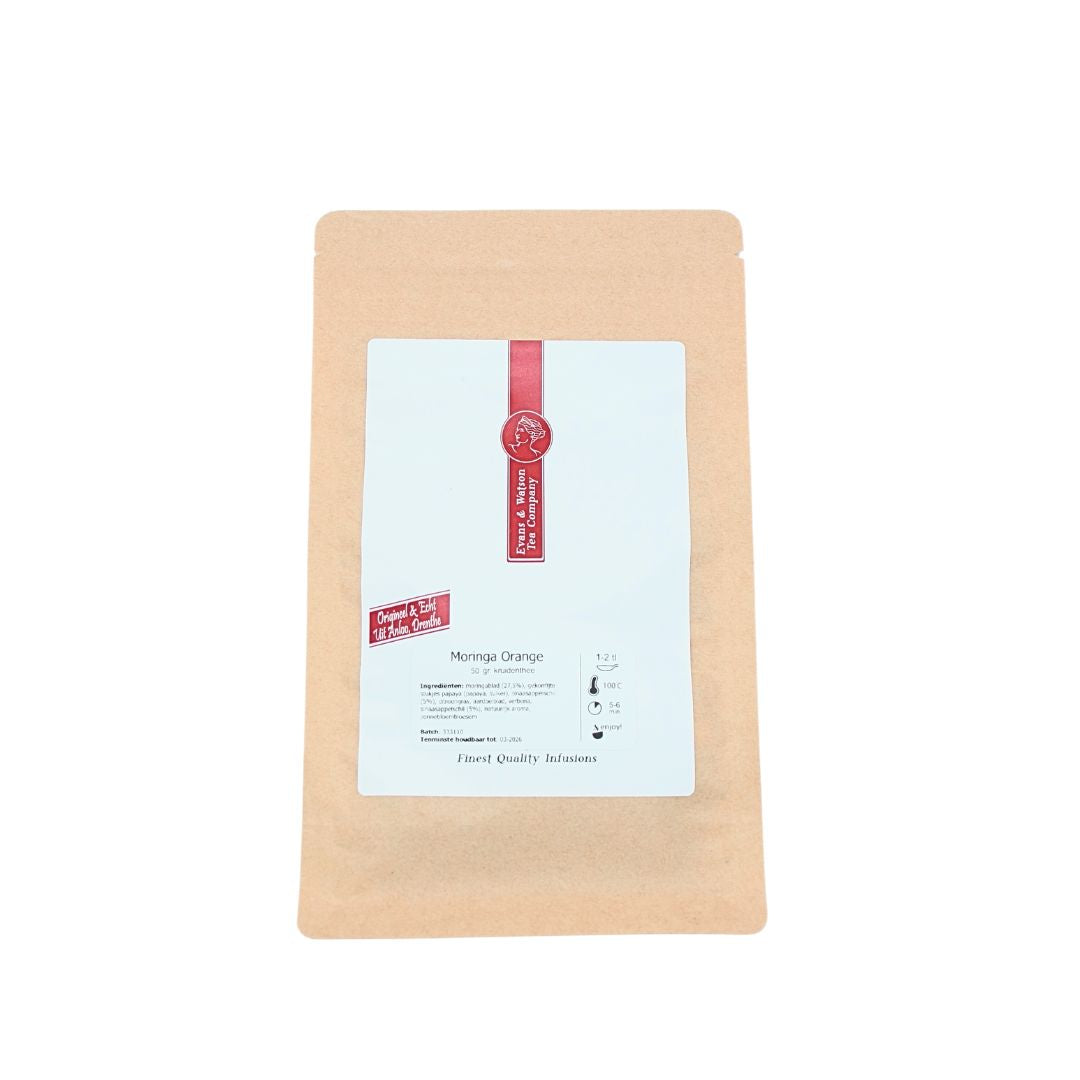 Geniet van de milde, verfrissende smaak van zongerijpte sinaasappelen met onze Moringa Orange thee. Deze thee is vrij van theïne en cafeïne, en dus ideaal voor de aanstaande moeder. Het is licht op de maag en smaakt zelfs ongezoet heerlijk.