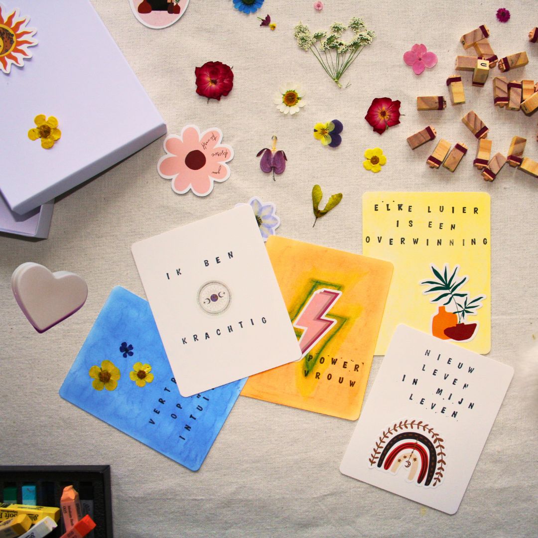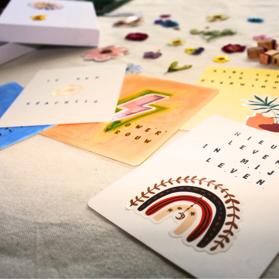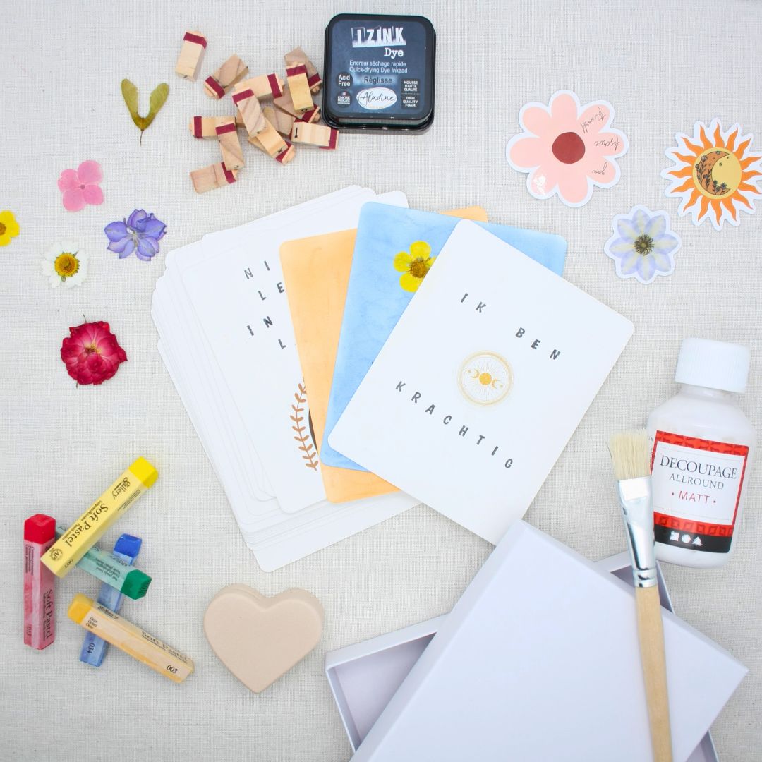 Stel de Workshop helemaal naar wens samen en voeg extra elementen toe om de affirmatiekaarten nog mooier te maken.