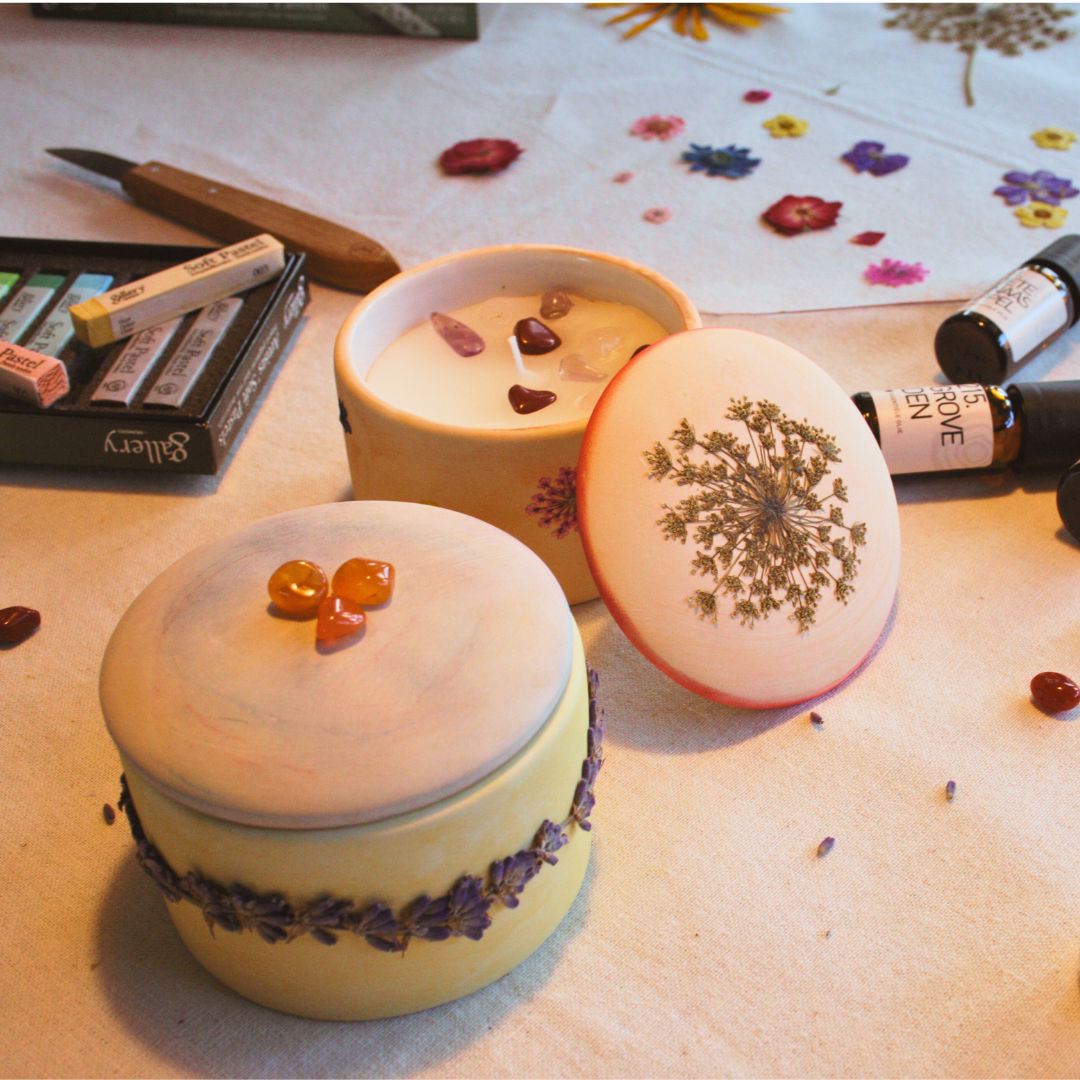 Maak samen iets bijzonders tijdens de Workshop Geboortekaars – een prachtige manier om de mama-to-be te verrassen met een persoonlijk en handgemaakt cadeau. Deze keramische kandelaar vormt de perfecte basis voor een unieke kaars. Versier hem met edelstenen, geperste bloemen, en voeg een paar druppels van je favoriete essentiële olie toe voor een persoonlijke, liefdevolle touch.